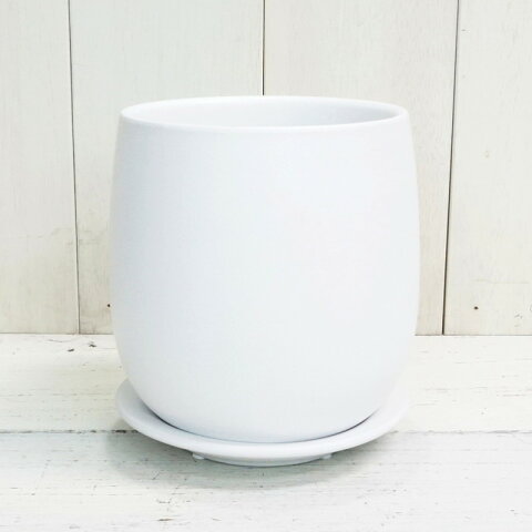 【訳あり】 ツルツル 上丸下角型 陶器鉢 白 ホワイト つや有 M 29cm 11リットル 受皿付 植木鉢 陶器 7号鉢用 鉢カバー [of20]