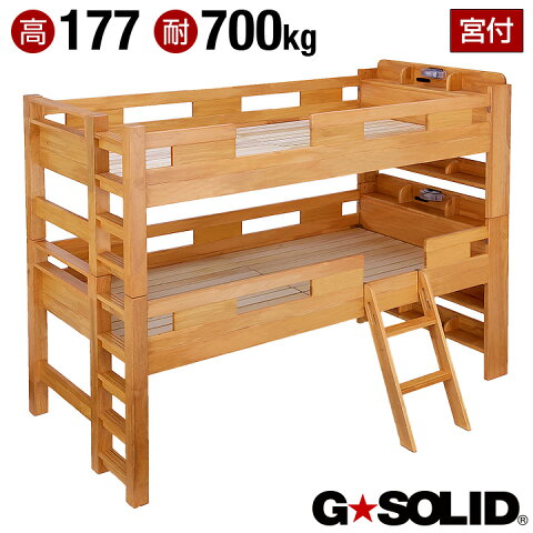 【割引クーポン配布中】【耐荷重700kg/耐震/業務用可】G★SOLID 宮付き 二段ベッド H177cm 梯子無 ライトブラウン 2段ベッド 二段ベット 2段ベット 子供用ベッド 大人用 ベッド 頑丈 木製 宮棚 子供部屋 (大型)