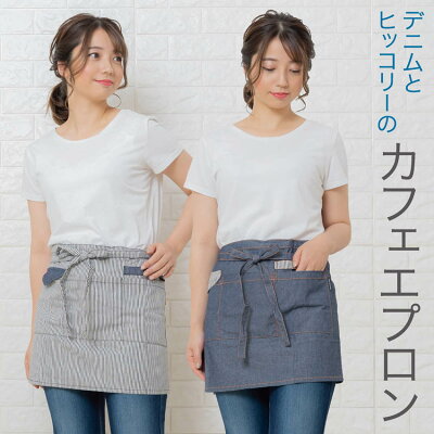 カフェエプロン 女性用 前掛け エプロン 制服 ユニフォーム ヒッコリー デニム 切り替え メール便対応
