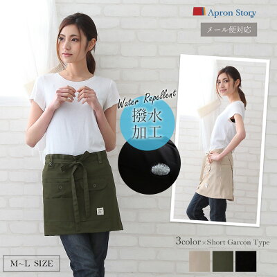 撥水加工で汚れにくく、ポケットがたくさんついていて便利なショート丈のエプロンです。