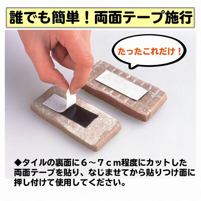 商品サイズ・重量 約4.5×9.5×厚1cm ・ 30.0G 個装サイズ・重量 23.0× 21.5× 6.0cm ・ 700g 素材 発泡磁器質タイル、両面テ?プ 生産国 日本 注意事項 テープ/210cm 幅20mm※磁器の為、焼き上がりサイズや色合いが多少異なる場合があります。