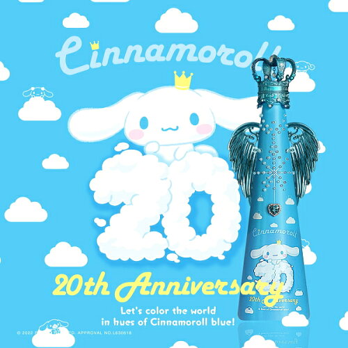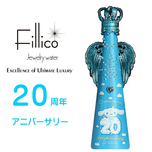サンリオ【正規品Fillicoジュエリーウォーター】フィリコ<br>『 シナモロール20周年 アニバーサリー 羽付 』メタルエンジェルウイング付720ml神戸ウォーター布引の水 クリスタルボトルシナモン 犬 看板犬 スワロフスキー インスタ映え