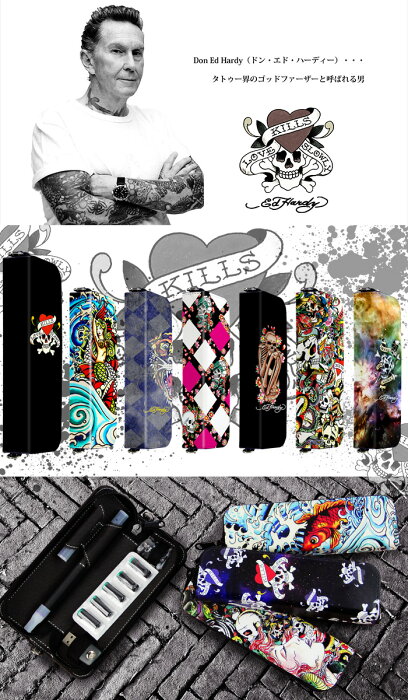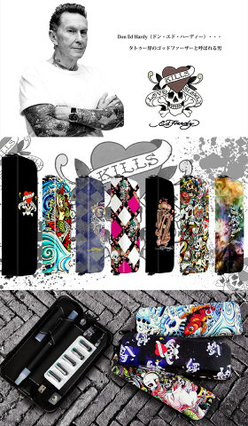 マウスピースを装着したまま収納可能 マイブルー My blu ケース プルームテック Ploom Tech カバー アクセサリー ploomtech myblu 電子タバコ 加熱式タバコ 2本 おしゃれ ラウンドファスナー コスメケース ペンケース EDHARDY公認 エドハーディー デザイン